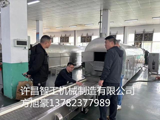 2024年4月9日,河南开封客户一行三人,带200斤腌制好的五香花生米来厂试机八米电磁流水线炒制。 许昌智工八米电磁流水线智能化控制,无需人工看管,炒出产品均匀一致。客户非常认可