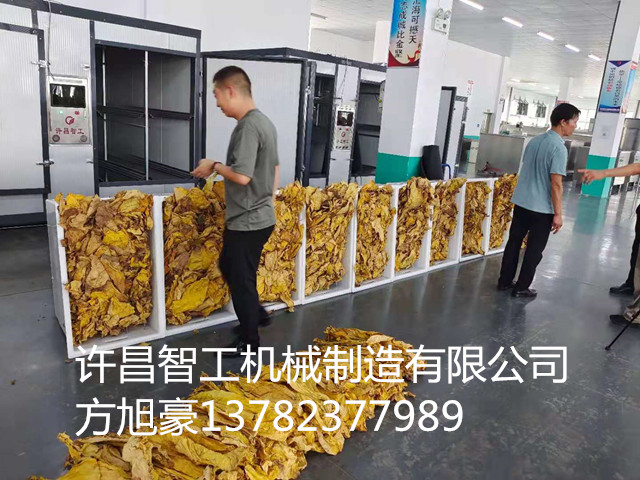 2021年8月16日,许昌智工空气能烟叶炕房经过5天的烘烤,烟叶成功出炕。 1、耗电少:该设备是一体柜式结构设计,结构紧凑,热损耗少,大大降低电能损耗量。 3、设计合理:人机界面人性化设计,控制面板设计在正面,并配备有红外识别系统,当烤烟技术员靠近时自动点亮荧屏并显示数据信息,使烤烟技术员对烤烟信息动态一目了然。 5、故障低:因为该设备是一体式结构,在出厂前安装、调试、检测比较完善,各部件安装、保护到位、规范、合理,大大降低了设备的故障率。 6、拆装方便:该设备是一体化机构,在更换使用场地时,施工技术要求低,便于拆装